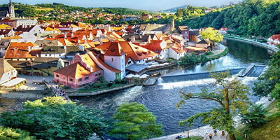 捷克有2個克魯姆洛夫—波希米 亞克魯姆洛夫和摩拉瓦克魯姆洛夫。波希米亞克魯姆洛夫被譽為「世上最美小鎮」,大部 分建築建於14世紀到17世紀, 多為哥德式和巴洛克風格。整座小鎮被流經該處的馬蹄鐵型 的伏爾塔瓦河蜿蜒相擁,著名的城堡建在河的對岸。登高望遠,以城堡為中心的中世紀城市一覽無遺。1992年聯合國教科文組織將她列為「世界文化和自然雙重遺產」。上午古城探索後,中午安排在當地歷史悠久的哥德式餐廳享用色香味俱全的捷捷克傳統美食,下午可自由以雙腳丈量這座美鎮或參加小紅人特色遊。